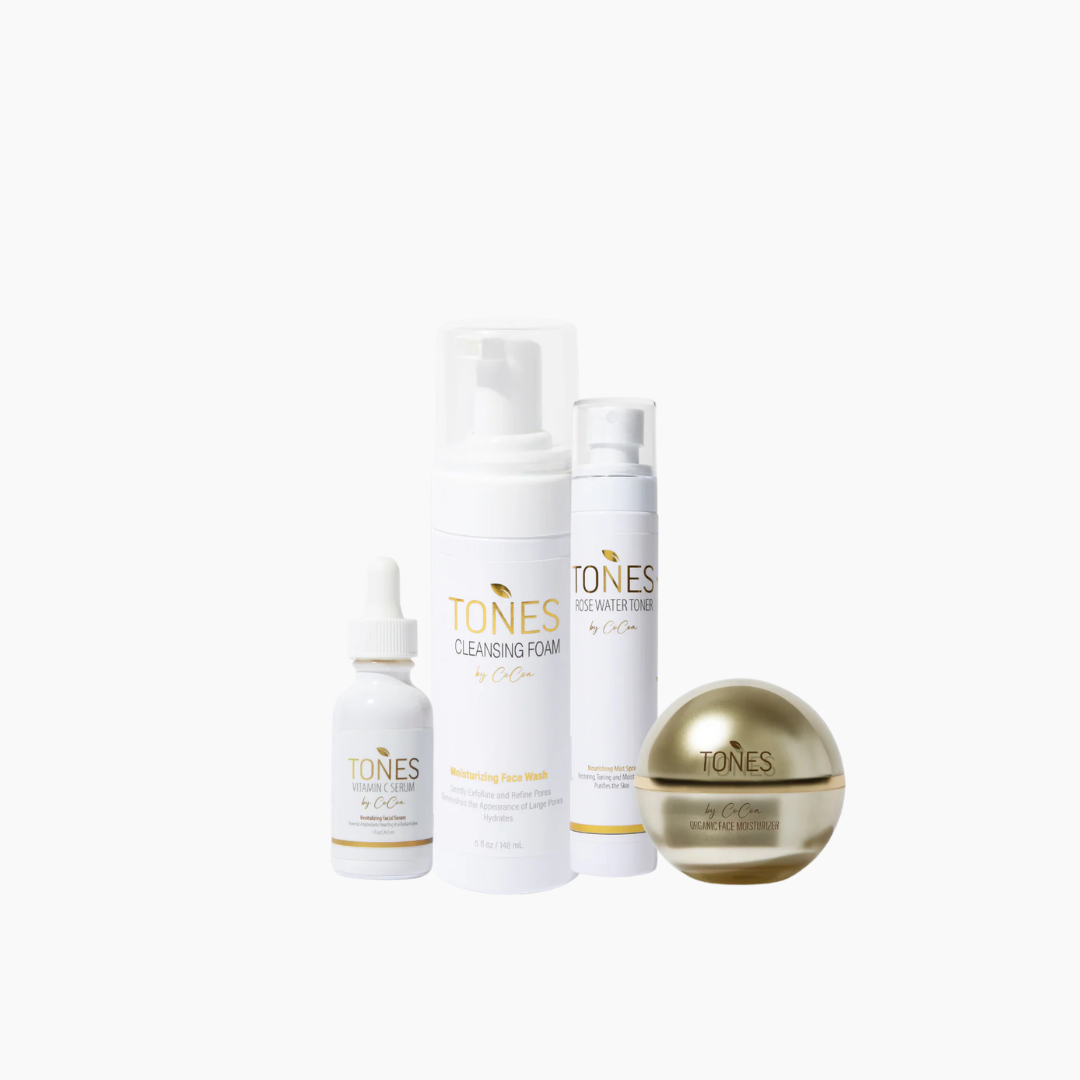 Start with the Cleansing Foam to gently remove impurities and refresh your skin. Follow with the Rose Water Toner to balance and prep your complexion, then apply a few drops of the Vitamin C Serum to brighten and even tone. Finish with the Organic Face Moisturizer to lock in hydration and glow. Perfect for daily use, morning and night.