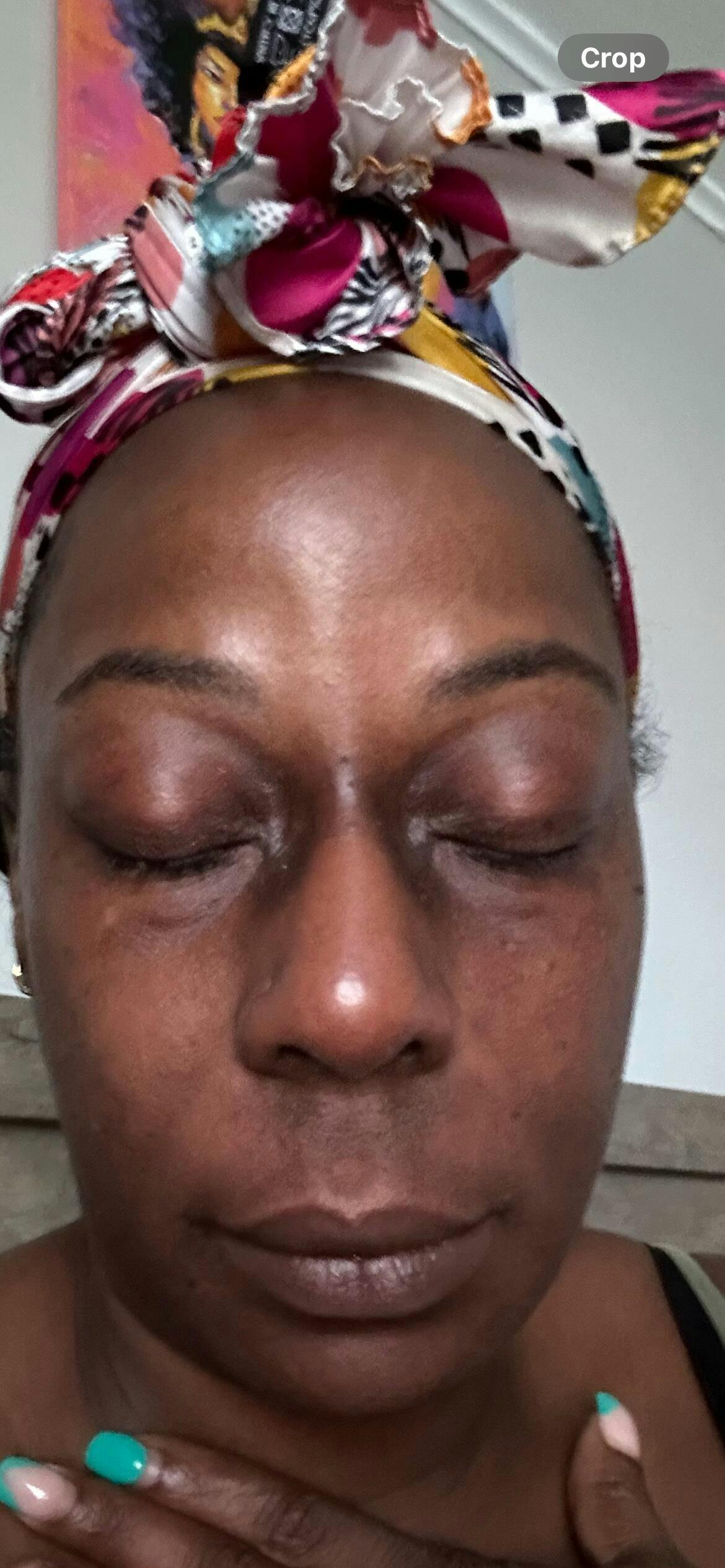 I love using this eye cream. It works very well and KEEPS my dark eye gone. My darkness comes from me rubbing my eyes which I do when Im really stressed so I love how well and fast this product works. Only thing is I notice now the bottle has gotten a lot smaller. Scarf pic is dated 9/23…the next pic is today 9/30